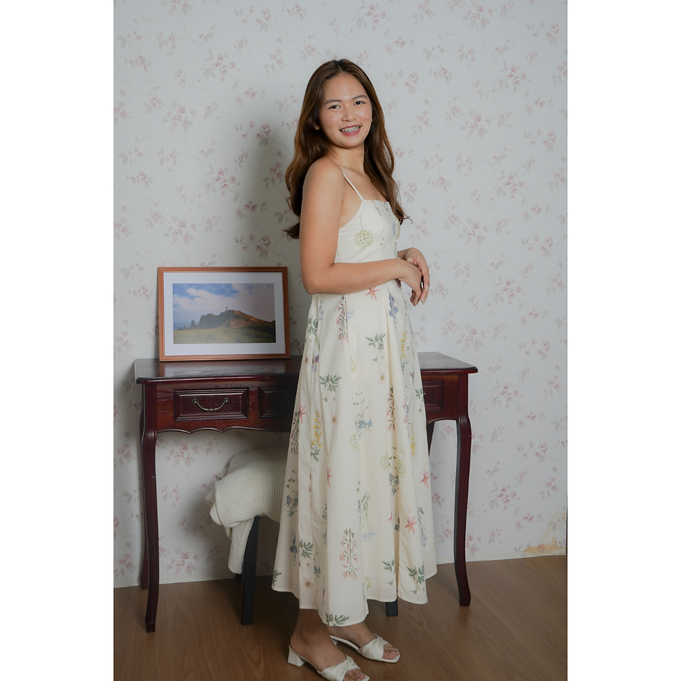 Made from printed cotton material, and in one of our bestselling cutting - our ruffle midaxi design, the Brittany Floral Ruffle Sleeveless Midaxi is a pretty piece that is suitable for various occasions:) This time round, we have designed for the dress to come with a smocked back for easy wearing and hopefully this would be an even more comfortable fit for our ladies. Adjustable straps, functional side pockets and also inner lining included. Dainty florals printed on the fabric also give off the feminine and sweet vibes.
